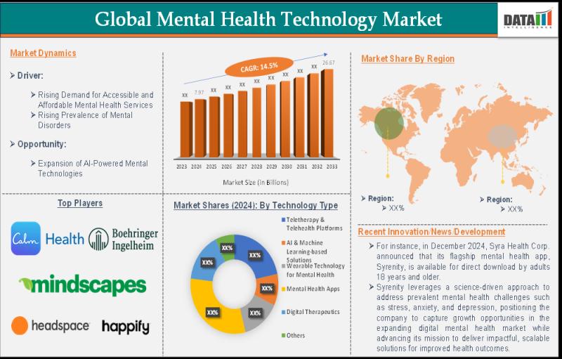 The global mental health technology market reached USD 7.97 billion in 2024 and is expected to reach USD 22.67 billion by 2033, growing at a CAGR of 12.8% during the forecast period 2025-2033, according to DataM Intelligence.