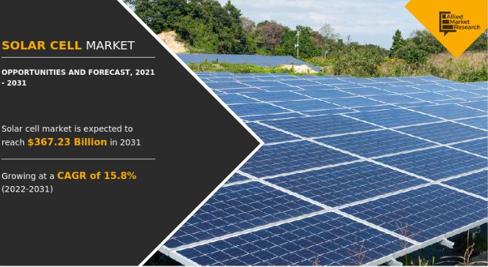 According to a new report published by Allied Market Research, The solar cell market size was valued at $84.91 billion in 2021, and solar cell industry is estimated to reach $367.23 billion by 2031, growing at a CAGR of 15.8% from 2022 to 2031.