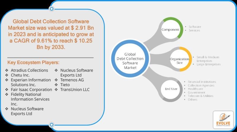 The Debt Collection Software Market is poised for significant growth, with a market size projected to reach US$ 2.91 billion in 2023 and a compound annual growth rate (CAGR) of 9.61% from 2023 to 2033. This growth is primarily driven by continuous technological advancements that enhance the efficiency and effectiveness of debt collection processes. Modern debt collection software leverages artificial intelligence, machine learning, and automation to streamline operations, reduce human error, and improve recovery rates. However, the market faces challenges due to the perception of high implementation costs and concerns over data security. Businesses may hesitate to adopt new technologies due to the initial investment required and potential vulnerabilities in handling sensitive financial data. Ensuring robust cybersecurity measures and demonstrating the long-term cost benefits are crucial to overcoming these barriers. Despite these challenges, the market presents substantial opportunities, particularly with the growth of cloud-based solutions. Cloud technology offers scalable, flexible, and cost-effective platforms for debt collection, allowing organizations to access advanced features without significant upfront investments. The adoption of cloud-based debt collection software can facilitate better data management, real-time analytics, and enhanced collaboration among teams, driving market growth in the coming years.For More Information: https://evolvebi.com/report/debt-collection-software-market-analysis/