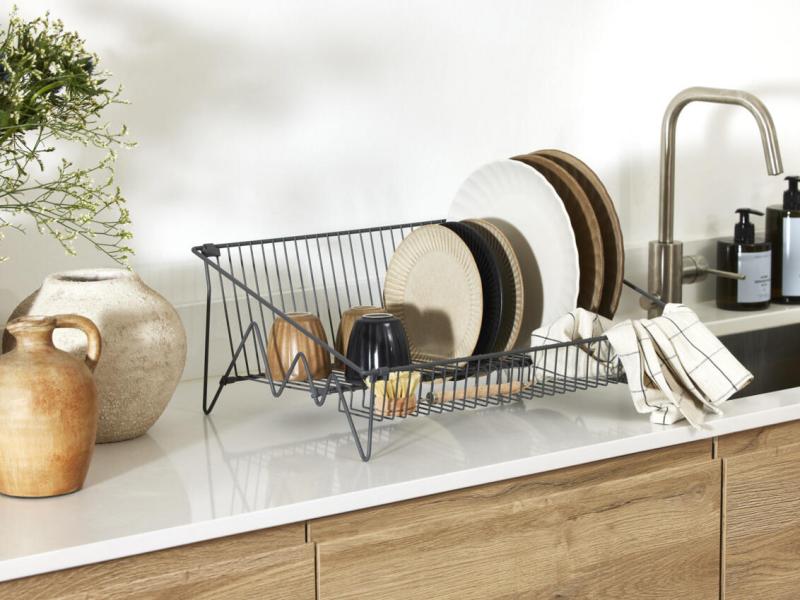 A dish rack is a kitchen accessory designed to hold and organize dishes, utensils, and cookware, allowing them to air-dry after washing. Typically made from materials like stainless steel, plastic, or bamboo, dish racks come in various sizes and designs to suit different kitchen layouts. They enhance kitchen organization, promote hygiene by facilitating proper drainage, and are widely used in homes, restaurants, and commercial kitchens.