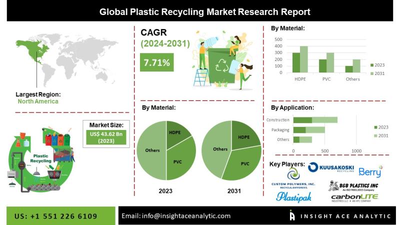 "Plastic Recycling Market" in terms of revenue was estimated to be worth $43.62 billion in 2023 and is poised to reach $77.89 billion by 2031, growing at a CAGR of 7.7% from 2024 to 2031 according to a new report by InsightAce Analytic.Get Free Access to Demo Report, Excel Pivot and ToC: https://www.insightaceanalytic.com/request-sample/1621