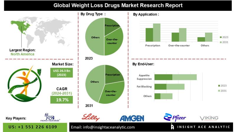 InsightAce Analytic Pvt. Ltd. announces the release of a market assessment report on the "Global Weight Loss Drugs Market- (By Drug Type (Prescription and Over-the-counter), By Product (Wegovy, Ozempic, Saxenda, Zepbound, Mounjaro and Others)), By Distribution Channel, By Region, Trends, Industry Competition Analysis, Revenue and Forecast To 2031."