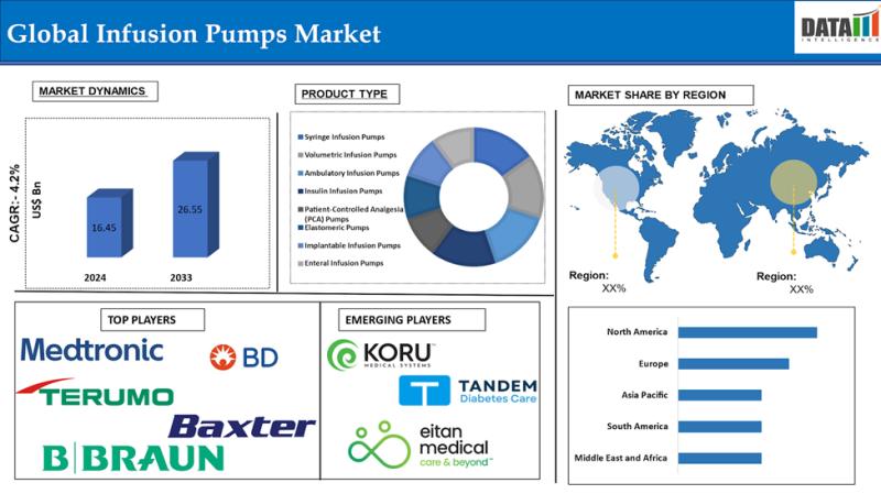 Global Infusion Pumps Market reached US$ 16.4 billion in 2024 and is expected to reach US$ 26.5 billion by 2033, growing at a CAGR of 4.2% during the forecast period 2025-2033.