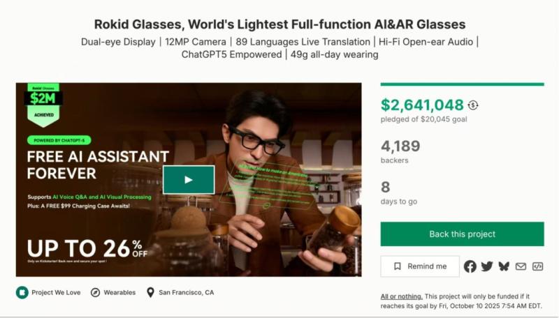 Rokid Surpasses $2.5 Million on Kickstarter, Emerges as a Global AI Glasses Succ …