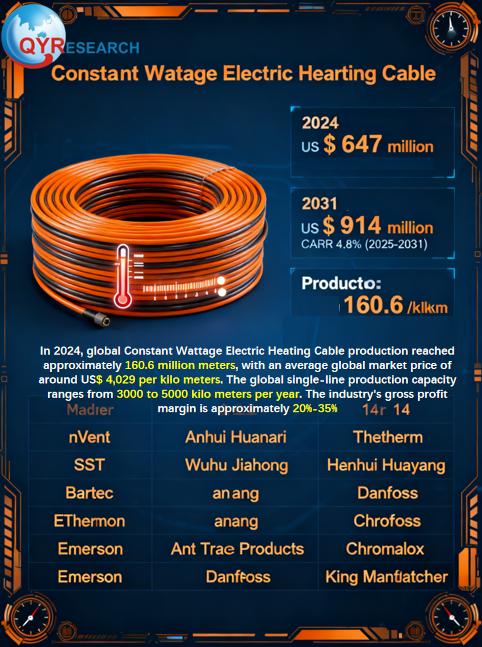 The global market for Constant Wattage Electric Heating Cable was estimated to be worth US$ 647 million in 2024 and is forecast to a readjusted size of US$ 914 million by 2031 with a CAGR of 4.8% during the forecast period 2025-2031.