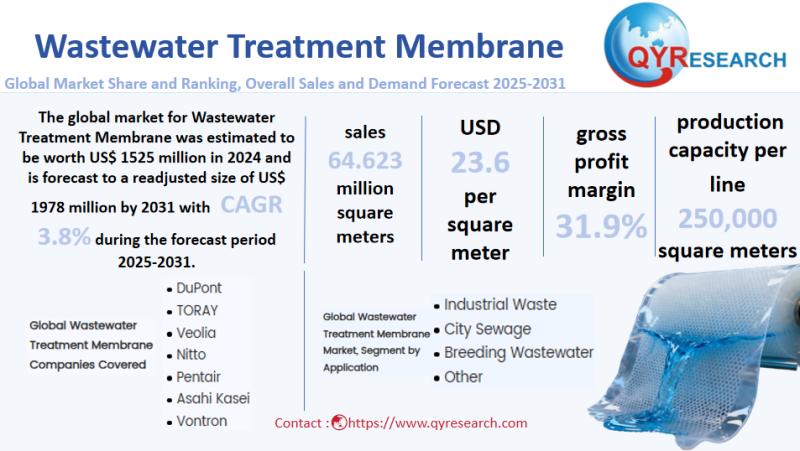 Global leading market research publisher QYResearch published the release of its latest report, "Wastewater Treatment Membrane - Global Market Share, Ranking, Sales, and Demand Forecast 2025-2031". This in-depth report provides a complete analysis of the global Wastewater Treatment Membrane market, offering critical insights into market size, share, demand, industry development status, and future forecasts. Whether you're a…