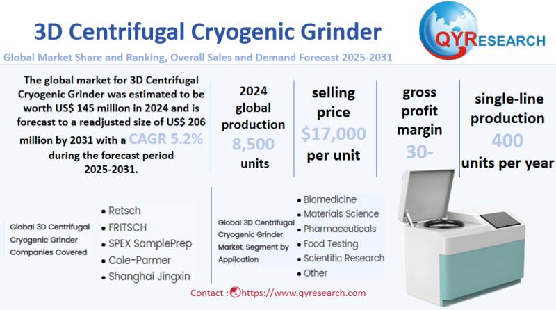 Global leading market research publisher QYResearch published the release of its latest report, "3D Centrifugal Cryogenic Grinder - Global Market Share, Ranking, Sales, and Demand Forecast 2025-2031". This in-depth report provides a complete analysis of the global 3D Centrifugal Cryogenic Grinder market, offering critical insights into market size, share, demand, industry development status, and future forecasts.…