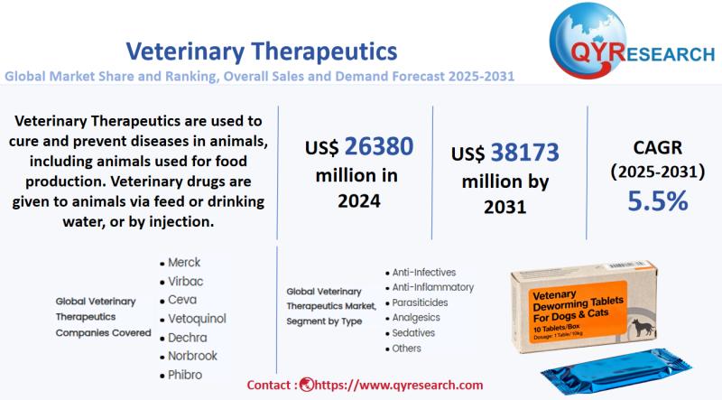 Global leading market research publisher QYResearch published the release of its latest report, "Veterinary Therapeutics - Global Market Share, Ranking, Sales, and Demand Forecast 2025-2031". This in-depth report provides a complete analysis of the global Veterinary Therapeutics market, offering critical insights into market size, share, demand, industry development status, and future forecasts. Whether you're a stakeholder, investor, or…