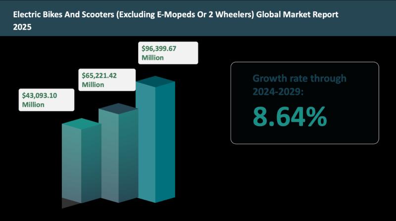 The global electric bikes and scooters (excluding e-mopeds or 2 wheelers) market was valued at approximately $43.09310 billion in 2024, reflecting a CAGR of 12.12% since 2019. The…