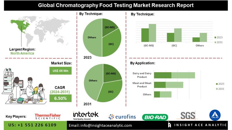 InsightAce Analytic Pvt. Ltd. announces the release of a market assessment report on the "Global Chromatography Food Testing Market Size, Share & Trends Analysis Report By Technique (chromatography-mass spectrometry (GC-MS), gas chromatography (GC), high-performance liquid chromatography (HPLC), liquid chromatography (LC)), Application (meat and meat, dairy and dairy products, cereal, grain, pulse, processed food)- Market Outlook And Industry Analysis 2031"The global Chromatography Food Testing Market is estimated to exhibit a CAGR of 6.27% during the forecast period.