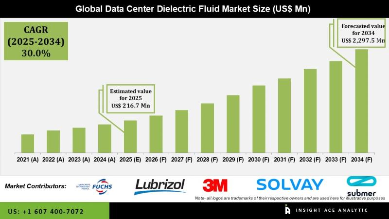 InsightAce Analytic Pvt. Ltd. announces the release of a market assessment report on the "Global Data Center Dielectric Fluid Market Size, Share & Trends Analysis Report By Application (Hyperscale, Colocation, Enterprise, and Others), By Fluid Type (Fluorocarbons, Mineral Oil, Synthetic Oil, Natural Oil, and Water-Glycol Mix), By Solution Type (Rear Door Heat Exchangers Data Center, and Direct Cooling),-Market Outlook And Industry Analysis 2034"