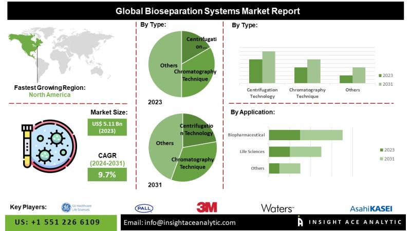 InsightAce Analytic Pvt. Ltd. announces the release of a market assessment report on the "Global Bioseparation Systems Market- (By Type (Centrifugation Technology, Cell Disruption Technology, Chromatography Technique, Extraction Technique, Filtration Technologies and Membrane-based Bioseparation and Precipitation), Application (Food, Life Sciences, Pharmaceutical and Biopharmaceutical)), By Region, Trends, Industry Competition Analysis, Revenue and Forecast To 2031."