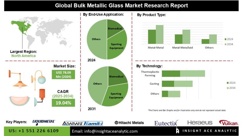 Insight Analytics Pvt. Ltd. announces the release of a market assessment report on the "Global Bulk Metallic Glass Market (By End Users (Consumer Electronics And Wearables, Biomedical, Sporting Equipment, Aerospace/Defense), Products (Metal-Metal And Metal-Metalloid) And Technology (Casting, Thermoplastic Forming And 3D Printing))- Market Outlook And Industry Analysis 2034"