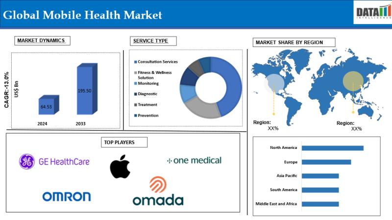 The Global Mobile Health (mHealth) Market size reached US$64.53 billion in 2024 and is expected to reach US$195.50 billion by 2033, growing at a CAGR of 13.0% during the forecast period 2025-2033.