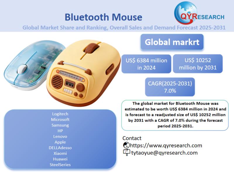 Global leading market research publisher QYResearch published the release of its latest report, "Bluetooth Mouse - Global Market Share, Ranking, Sales, and Demand Forecast 2025-2031". This in-depth report provides a complete analysis of the global Bluetooth Mouse market, offering critical insights into market size, share, demand, industry development status, and future forecasts. Whether you're a stakeholder, investor, or…