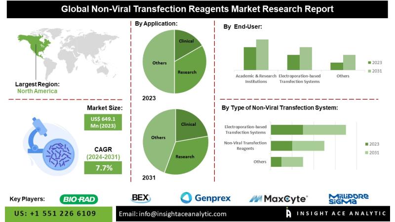 InsightAce Analytic Pvt. Ltd. announces the release of a market assessment report on the "Global Non-Viral Transfection Reagents Market- (Type of Non-Viral Transfection System (Non-Viral Transfection Reagents, Electroporation-based Transfection Systems, Other Non-Viral Transfection Systems), Area of Application (Clinical Applications, Research Applications) By End User (Academic and Research Institutions, Pharmaceutical Companies, Other End-Users)), By Region, Trends, Industry Competition Analysis, Revenue and Forecast To 2031."
