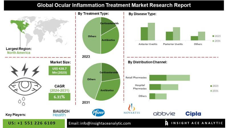 InsightAce Analytic Pvt. Ltd. announces the release of a market assessment report on the "Global Ocular Inflammation Treatment Market - (By Treatment Type (Corticosteroids, Antibiotics, Monoclonal Antibodies, Immunosppressant, Cycloplegic Agents, Antivirals, Antifungal, Analgesics), By Disease Type (Anterior Uveitis, Posterior Uveitis, Pan Uveitis, Intermediate Uveitis, Episcleritis/Scleritis), By Mode of Administration (Topical, Injectable, Oral, Others), By Distribution Channel (Hospital Pharmacies, Retail Pharmacies, Online Pharmacies, Drug Stores)), Trends, Industry Competition Analysis, Revenue and…