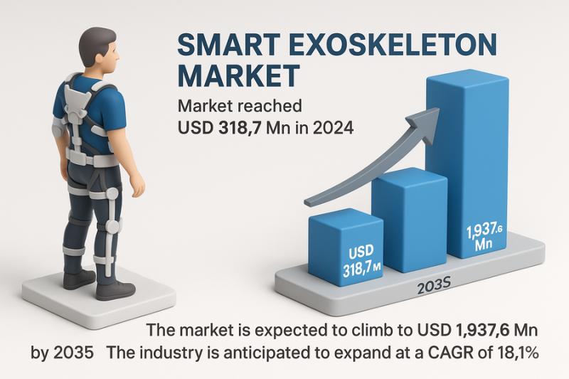 The global smart exoskeleton market size was valued at USD 318.7 Mn in 2024 and is projected to reach USD 1,937.6 Mn by 2035, expanding at a CAGR of 18.1% from 2025 to 2035. The market growth is driven by an increasing demand for rapid infectious disease screening and technological advancements improving sensitivity and multiplexing.