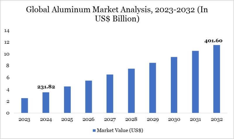 Aluminum Market size reached US$ 231.82 billion in 2024 and is expected to reach US$ 401.60 billion by 2032, growing with a CAGR of 7.11% during the forecast period 2025-2032