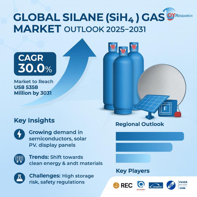 Los Angeles, United States - QY Research has released a comprehensive new report titled "Global Silane(SiH4) Gas Market Insights, Forecast 2025 to 2031," offering an in-depth analysis of the evolving dynamics, growth opportunities, and future outlook of the global Silane(SiH4) Gas industry. The study highlights critical factors such as regulatory frameworks, technological advancements, pricing strategies, and market entry approaches that are shaping the sector.