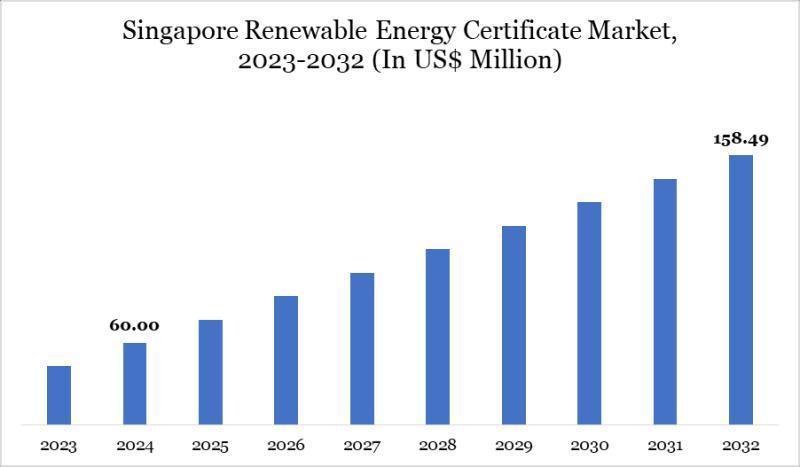 Singapore's renewable energy certificate (REC) market was valued at US$ 60 million in 2024 and is projected to reach US$ 158.49 million by 2032, growing at a CAGR of 11.8% from 2025 to 2032.