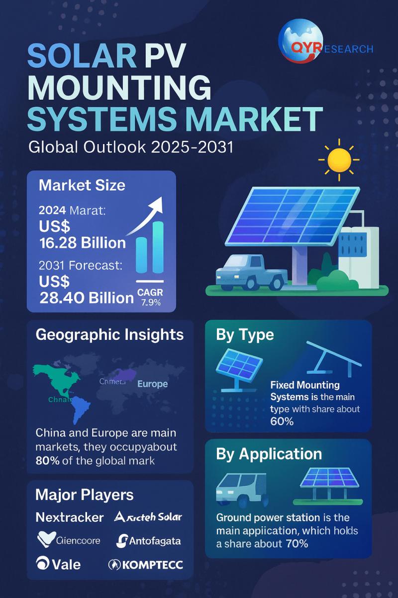 Los Angeles, United States - QY Research has unveiled its latest study titled "Global Solar PV Mounting Systems Market Share and Ranking, Overall Sales and Demand Forecast 2025-2031." This newly released report delivers a comprehensive overview of the global Solar PV Mounting Systems market, analyzing the forces shaping its growth trajectory and providing valuable insights for stakeholders, investors, and industry professionals. the research covers key areas including market dynamics, segmentation,…