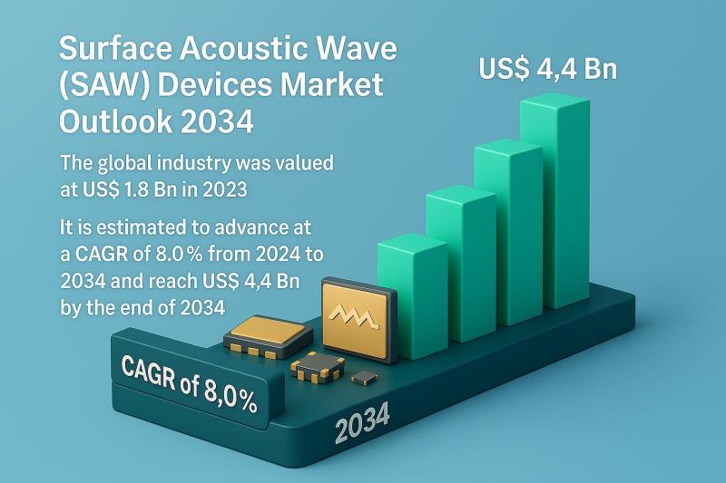 The global Surface Acoustic Wave (SAW) Devices Market is entering a new phase of accelerated growth, driven by the rapid evolution of telecommunications, expanding adoption of IoT devices, and rising demand for compact, energy-efficient sensor solutions. According to recent industry estimates, the SAW devices market valued at US$ 1.8 Bn in 2023 is projected to grow at a CAGR of 8.0% from 2024 to 2034, ultimately reaching US$ 4.4 Bn…