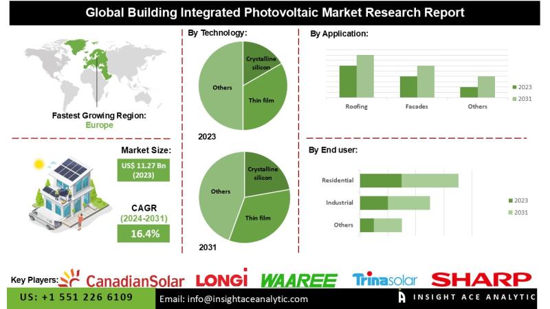 InsightAce Analytic Pvt. Ltd. announces the release of a market assessment report on the "Building Integrated Photovoltaic Market"-, By Technology (Crystalline silicon, Crystalline silicon), By Application (Roofing, Facades, Externally Integrated Systems (EIS)), By End-user (Residential, Commercial, Industrial), Industry Trends, and Global Forecasts, 2024-2031 And Segment Revenue and Forecast To 2031."