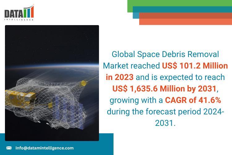 Space Debris Removal Market reached US$ 101.2 Million in 2023 and is expected to reach US$ 1,635.6 Million by 2031, growing with a CAGR of 41.6% during the forecast period 2024-2031.