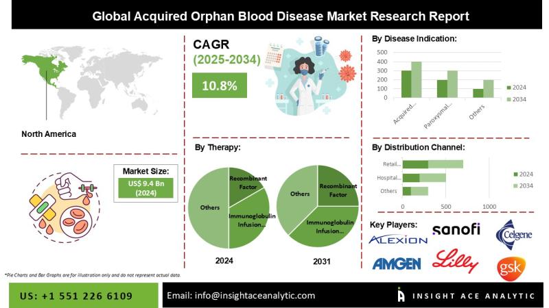 According to a new report by InsightAce Analytic, "Global Acquired Orphan Blood Disease Market Size is valued at USD 9.4 Billion in 2024 and is predicted to reach USD 26.1 Billion by the year 2034 at a 10.8% CAGR during the forecast period for 2025-2034.