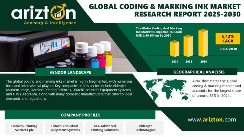 According to Arizton research, the global coding and marking ink market [https://www.arizton.com/market-reports/coding-and-marking-ink-market] was valued at USD 1.82 billion in 2024 and is projected to reach USD 2.60 billion by 2030, growing at a CAGR of 6.12%. The market's growth is fueled by stricter regulatory standards, increasing emphasis on product traceability, and ongoing advancements in printing technologies.