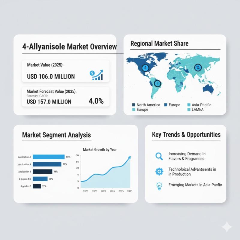 The global 4-Allylanisole Market is poised for substantial expansion over the next decade, propelled by increasing consumer preference for natural flavor compounds and the relentless growth of the food and beverage industry. According to the latest market forecast, the 4-allylanisole market is projected to grow from an estimated USD 106 million in 2025 to approximately USD 157 million by 2035.