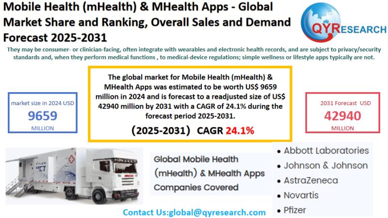 The global market for Mobile Health (mHealth) & MHealth Apps was estimated to be worth US$ 9659 million in 2024 and is forecast to a readjusted size of US$ 42940 million by 2031 with a CAGR of 24.1% during the forecast period 2025-2031.