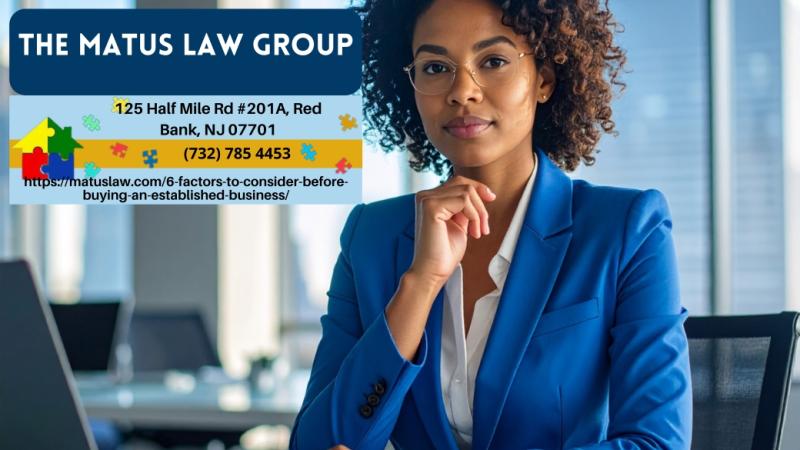 Toms River, NJ - Christine Matus of The Matus Law Group (https://matuslaw.com/6-factors-to-consider-before-buying-an-established-business/) released practical guidance outlining seven key considerations for prospective buyers evaluating an established business, spotlighting legal diligence, valuation approaches, and market reputation. The announcement underscores how a New Jersey real estate lawyer can frame transactions to reduce risk and align acquisitions with long-term goals for investors and entrepreneurs across the state.