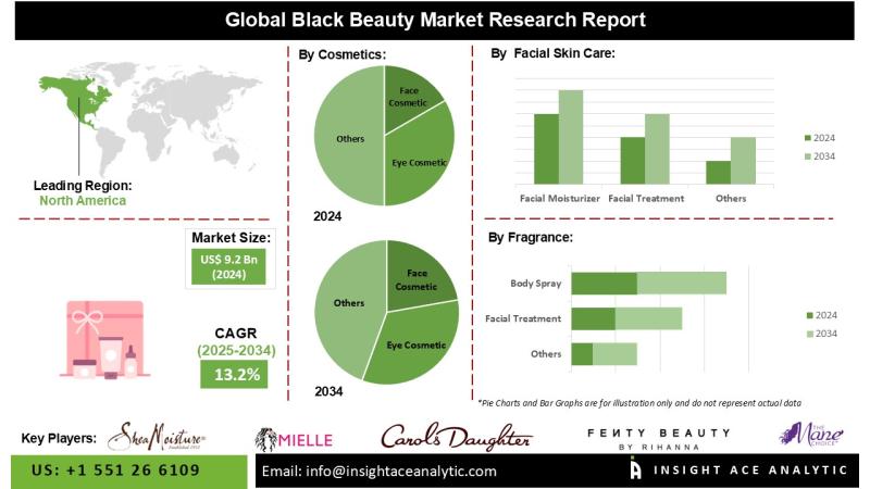 InsightAce Analytic Pvt. Ltd. announces the release of a market assessment report on the "Global Black Beauty Market - (By Cosmetics (Face Cosmetic, Eye Cosmetic, Lip Cosmetic, Others), By Facial Skin Care (Facial Moisturizer, Facial Treatment, Eye Skin Care, Others), By Fragrance (Cologne & Perfume, Body Spray, Gift Sets, Others), By Hair Care (Hair Accessories, Conditioner, Styling Products, Others), By HBL (Body Lotion, Eczema & Psoriasis, Others)), Trends, Industry Competition…