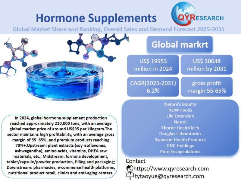 Global leading market research publisher QYResearch published the release of its latest report, "Hormone Supplements - Global Market Share, Ranking, Sales, and Demand Forecast 2025-2031". This in-depth report provides a complete analysis of the global Hormone Supplements market, offering critical insights into market size, share, demand, industry development status, and future forecasts. Whether you're a stakeholder, investor, or…