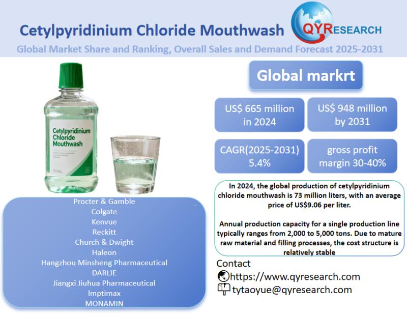 Global leading market research publisher QYResearch published the release of its latest report, "Cetylpyridinium Chloride Mouthwash - Global Market Share, Ranking, Sales, and Demand Forecast 2025-2031". This in-depth report provides a complete analysis of the global Cetylpyridinium Chloride Mouthwash market, offering critical insights into market size, share, demand, industry development status, and future forecasts. Whether you're a…