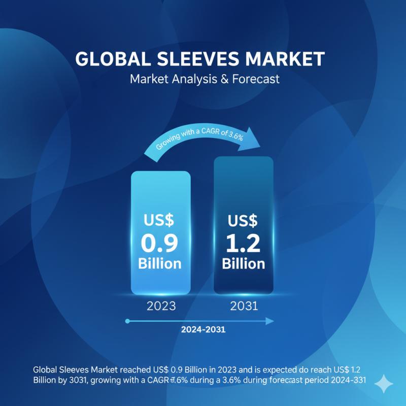 The Sleeves Market was valued at US$ 0.9 billion in 2023 and is projected to reach US$ 1.2 billion by 2031, growing at a CAGR of 3.6% during the forecast period 2024-2031.