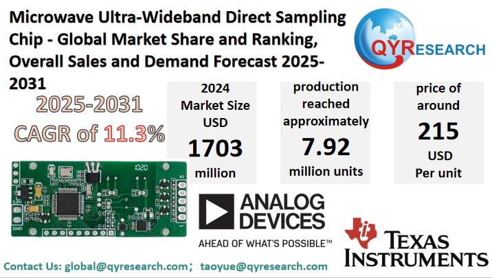 The global market for Microwave Ultra-Wideband Direct Sampling Chip was estimated to be worth US$ 1703 million in 2024 and is forecast to a readjusted size of US$ 3602 million by 2031 with a CAGR of 11.3% during the forecast period 2025-2031.