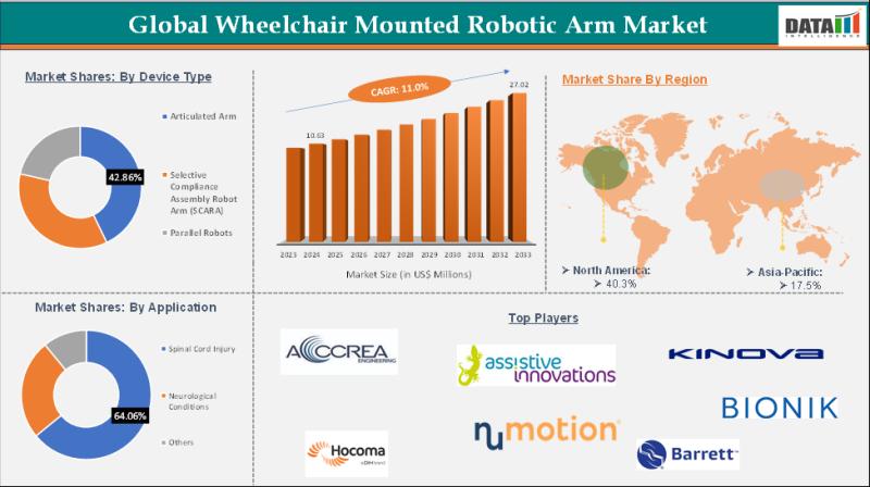 "Wheelchair Mounted Robotic Arm Market reached US$ 10.63 Million in 2024 and is expected to reach US$ 27.02 Million by 2033, growing at a CAGR of 11.0% during the forecast period 2025-2033." As per DataM intelligence research report