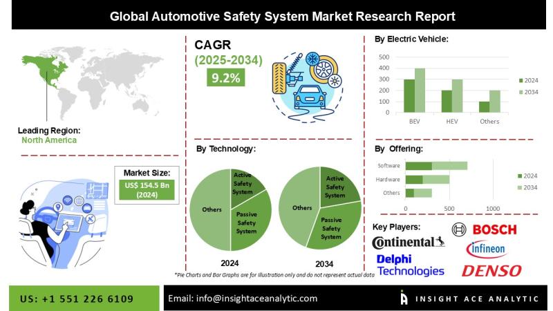 InsightAce Analytic Pvt. Ltd. announces the release of a market assessment report on the "Global Automotive Safety System Market Size, Share & Trends Analysis Report By Technology (Active (ABS, ESC, BSD, LDWS, TPMS) and Passive (Airbag, Pedestrian and Whiplash Protection)), On-highway (PC, LCV, Buses, Trucks), Off-highway (agriculture and construction vehicles), Electric vehicles (battery EV, fuel cell EV, hybrid EV, and plug-in hybrid EV), Offering (Hardware, Software)- Market Outlook And Industry…