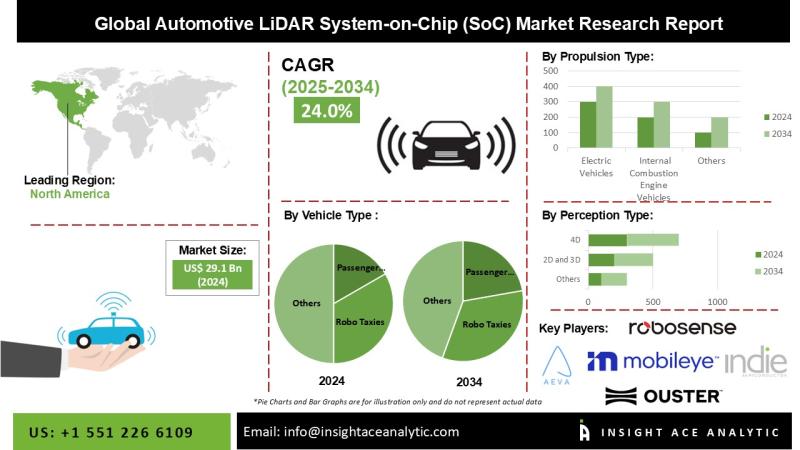 InsightAce Analytic Pvt. Ltd. announces the release of a market assessment report on the "Global Automotive LiDAR System-on-Chip (SoC) Market Size, Share & Trends Analysis Report By Vehicle Type (Passenger Cars, Commercial Vehicles, And Robo Taxis), Level Of Autonomy (Semi-Autonomous And Fully Autonomous), Range Type (Short-To-Medium-Range LiDAR and Medium-To-Long-Range LiDAR), Propulsion Type (Electric Vehicles, And Internal Combustion Engine Vehicles) And Perception Type (2D & 3D, and 4D)- Market Outlook And…