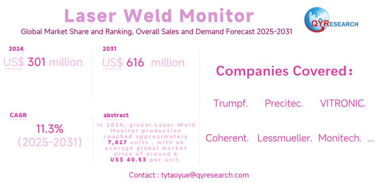 Global leading market research publisher QYResearch published the release of its latest report, "Laser Weld Monitor - Global Market Share, Ranking, Sales, and Demand Forecast 2025-2031". This in-depth report provides a complete analysis of the global Laser Weld Monitor market, offering critical insights into market size, share, demand, industry development status, and future forecasts. Whether you're a…