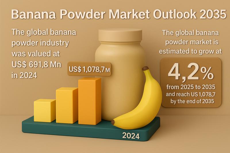 The global banana powder market is poised for steady growth, driven by consumer preference for natural, nutritious, and minimally processed ingredients. Valued at US$ 691.8 Mn in 2024, the market is projected to reach US$ 1,078.7 Mn by 2035, expanding at a CAGR of 4.2% from 2025 to 2035, according to the latest industry analysis.