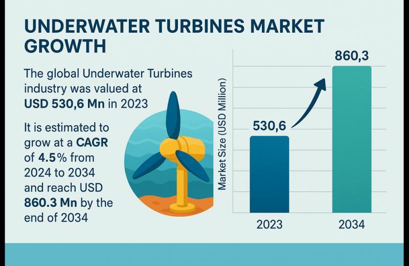 The global underwater turbines market is gaining strong momentum as the world accelerates its shift toward clean, dependable, and low-carbon energy sources. Valued at US$ 530.6 million in 2023, the industry is projected to grow steadily at a CAGR of 4.5% between 2024 and 2034, reaching an estimated US$ 860.3 million by 2034. As governments and energy players diversify their renewable portfolios, underwater (marine or tidal) turbines are emerging as…