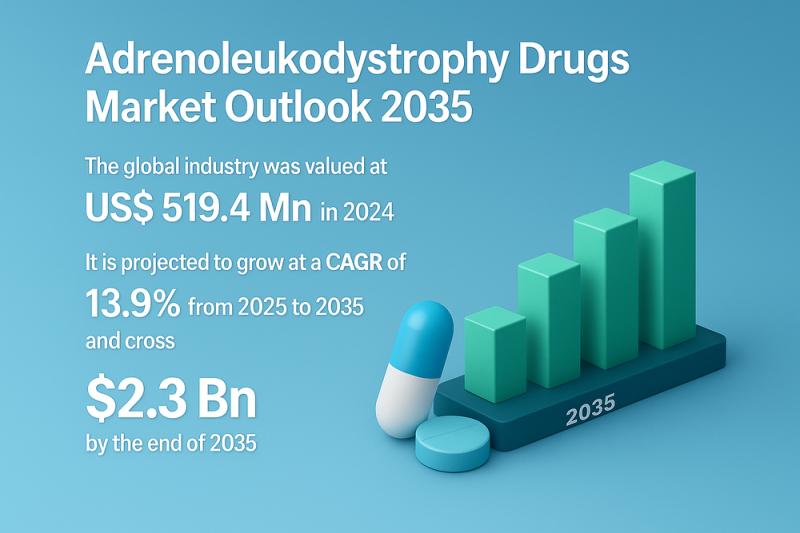 The global Adrenoleukodystrophy (ALD) Drugs Market is poised for substantial growth over the next decade, driven by accelerated research and development (R&D), expanding diagnostic capabilities, increasing FDA and EMA approvals, and rising awareness of rare genetic disorders. According to new industry analysis, the global ALD drugs market-valued at US$ 519.4 million in 2024-is projected to grow at a CAGR of 13.9% from 2025 to 2035, ultimately reaching US$ 2.3 billion…