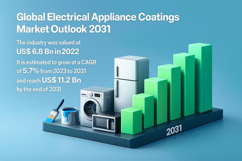 The global Electrical Appliance Coatings Market is witnessing strong expansion, driven by surging consumer demand for advanced electronic devices, rapid technological advancements, and the growing emphasis on energy-efficient and environmentally friendly appliances. According to the latest market evaluation, the industry, valued at US$ 6.8 billion in 2022, is projected to grow at a CAGR of 5.7% from 2023 to 2031, ultimately reaching US$ 11.2 billion by 2031.
